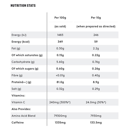 - حاوی آمینو اسیدهای ضروری، ویتامین C و کافئین