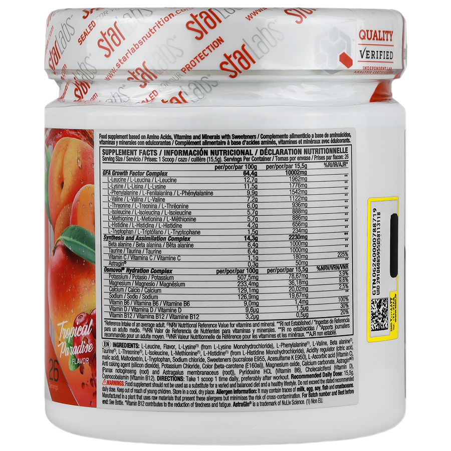 پودر آمینو اسید جی اف ای گروث فکتور استارلبز یک مکمل غذایی برای تامین سریع و راحت آمینو اسید های مورد نیاز بدن، به ویژه برای ورزشکاران و افرادی که به دنبال بهبود ریکاوری،رشد عضلانی و سلامت عمومی هستند، می باشد.