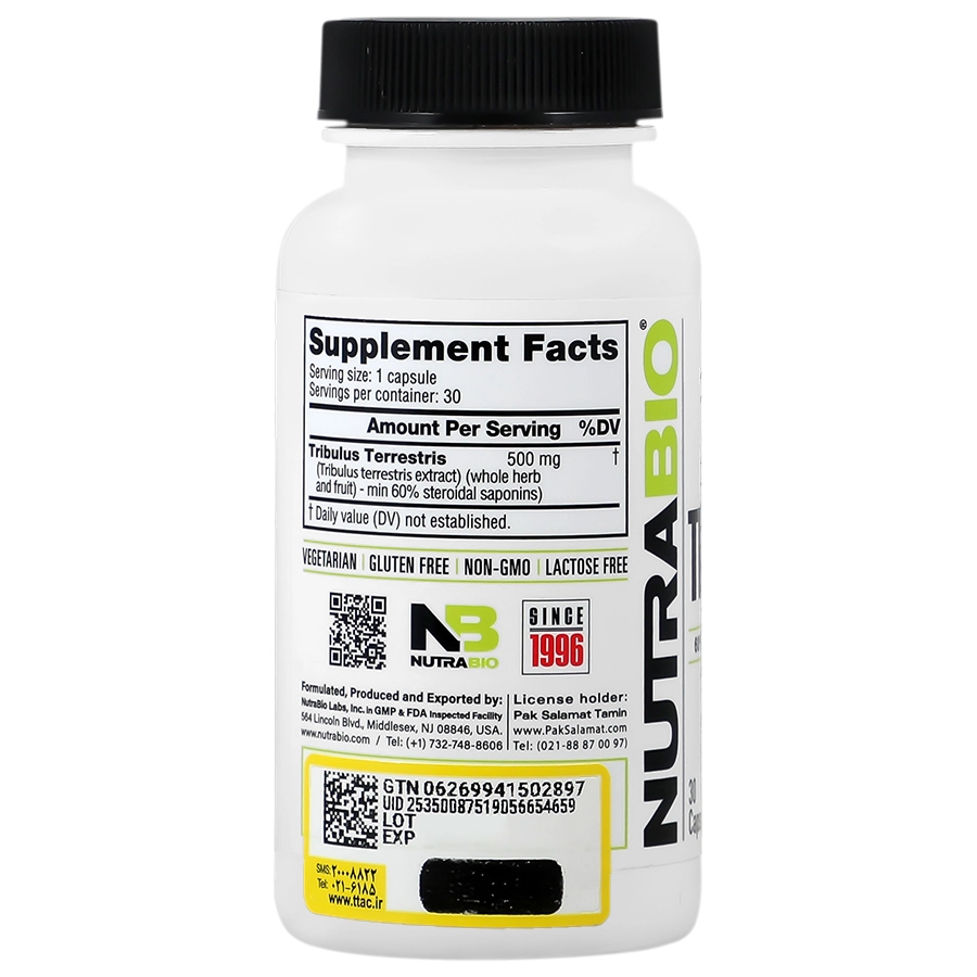 تریبولوس نوترابایو محصول کشور تحت لیسانس آمریکا و در قوطی 30 عدد کپسول بسته بندی می شود.