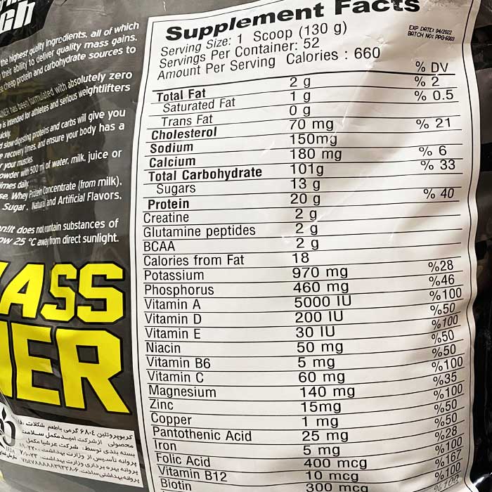 مصرف پودر مس گینر بلافاصله بعد از اتمام تمرین منجر به آبرسانی به بدن شده و علاوه بر آن سطح گلیکوژن را حفظ میکند. این مکمل ورزشی حاوی اسید آمینههای ضروری و غیر ضروری بوده و تمامی مواد مورد نیاز جهت بازسازی عضلات، افزایش حجم و تامین انرژی را دربر گرفته است.