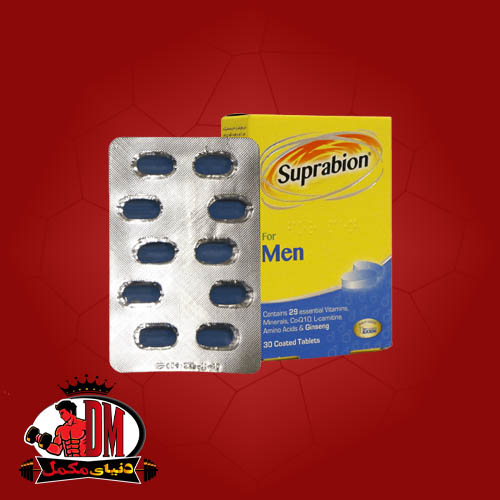 قرص مولتی ویتامین مینرال آقایان سوپرابیون ۳۰ عددی (Suprabion Multivitamin Mineral) جهت آزاد سازی انرژی مورد نیاز بدن به ویژه ورزشکاران، اشخاص پر تحرک و گیاه خواران و هم‌چنین تامین ویتامین‌ها و مواد معدنی مورد نیاز آقایان در کنار افزایش قوای جنسی به بازار عرضه شده است. از مزایای جینسینگ موجود در این قرص می‌توان به اثر ضد خستگی، بهبود فعالیت حافظه، افزایش شادابی و نشاط، تقویت قوای جنسی، مقابله با پیری و فرسودگی و افزایش قدرت تحمل و پایداری و مقابله با استرس را نام برد.