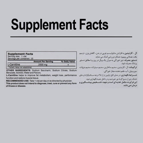 - حاوی ۲۰۰۰ میلی گرم ال کارنیتین در هر ۱۰ میلی لیتر