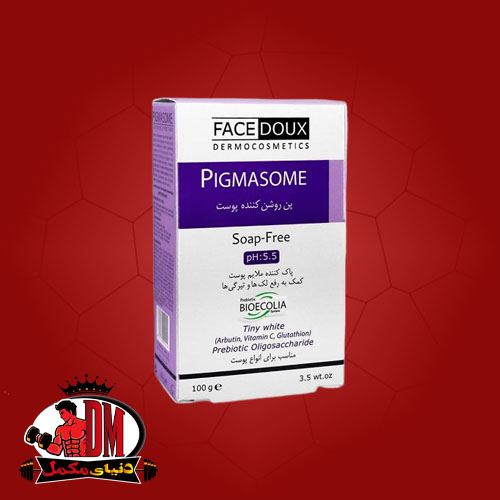 پن روشن کننده پوست پیگمازوم فیس دوکس (Facedoux Pigmasome Lightening Syndet Bar) ۱۰۰ گرمی، یک شوینده مناسب جهت استفاده روزانه به منظور حفظ بهداشت و سلامت پوست صورت و بدن میباشد.