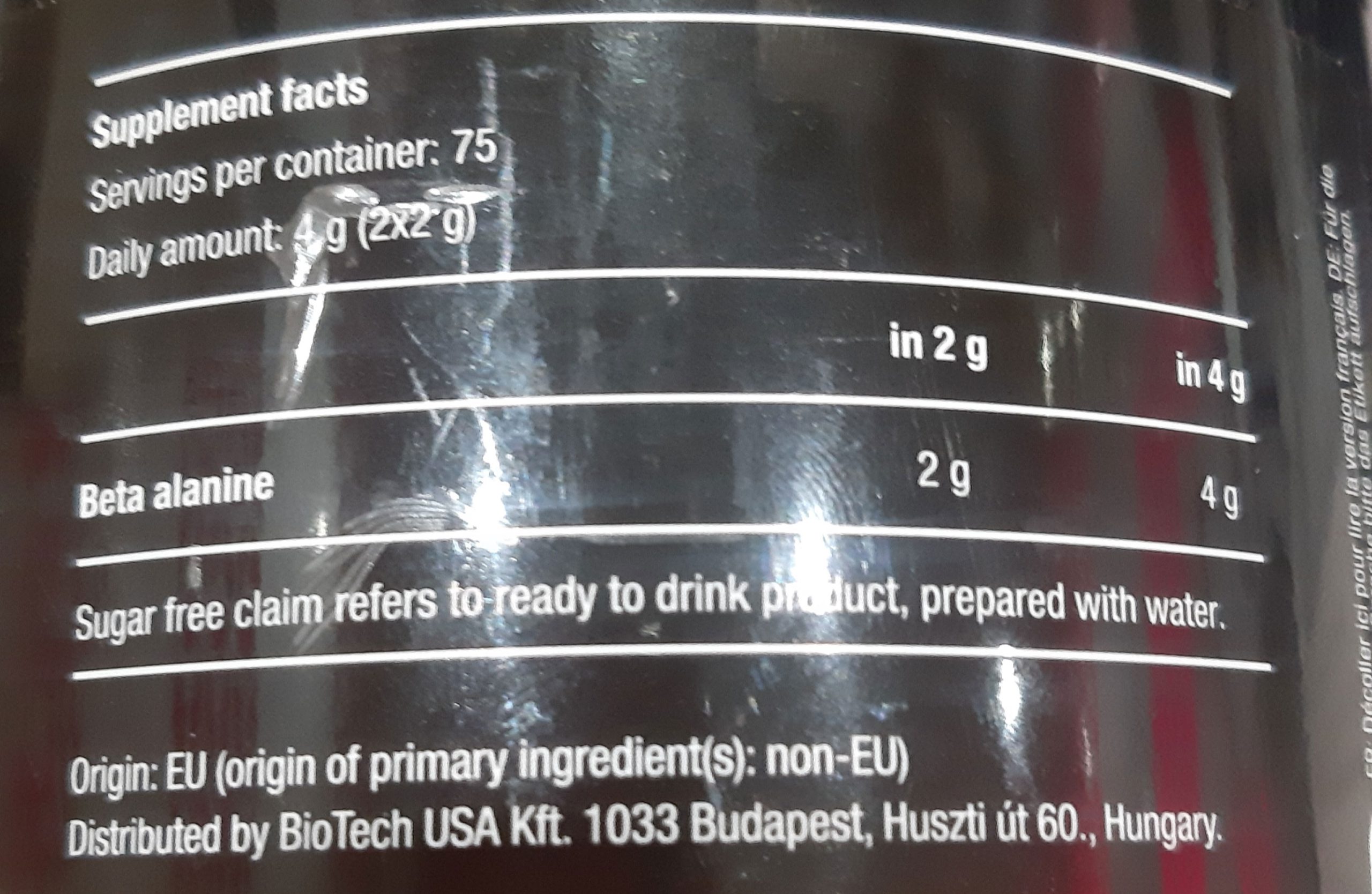 بتا آلانین پودری بایوتک (BioTech Beta alanine) 300 گرمی،محصول کشور مجارستان میباشد.