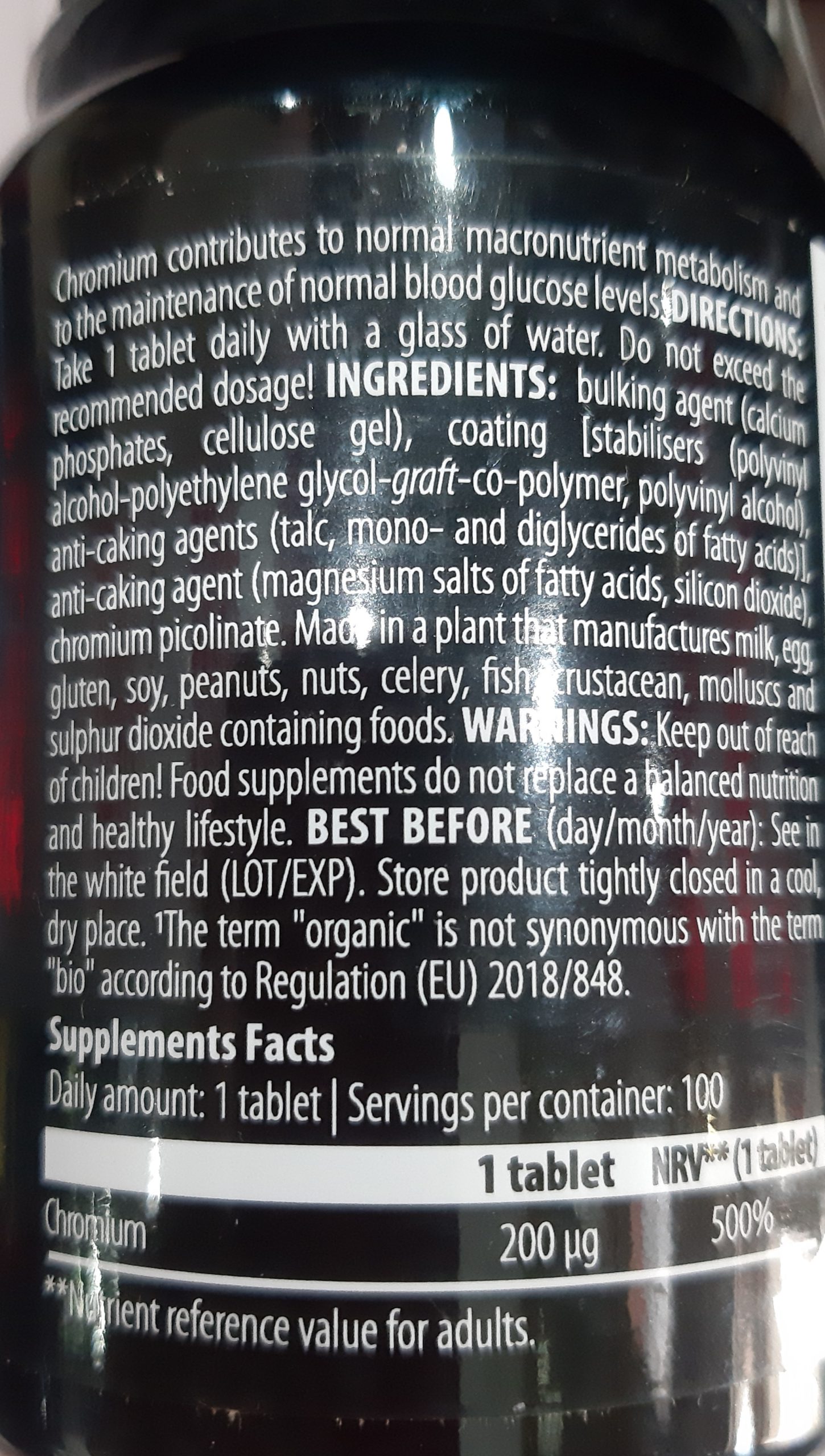 - کروم پیکولینات (200 میکروگرم در هر قرص):کروم پیکولینات ترکیبی از کروم و اسید پیکولینیک است که جذب کروم را در بدن به حداکثر میرساند. این فرم از کروم به دلیل جذب بالای آن در بدن شناخته شده است و به بهبود عملکرد متابولیکی بدن کمک میکند.
